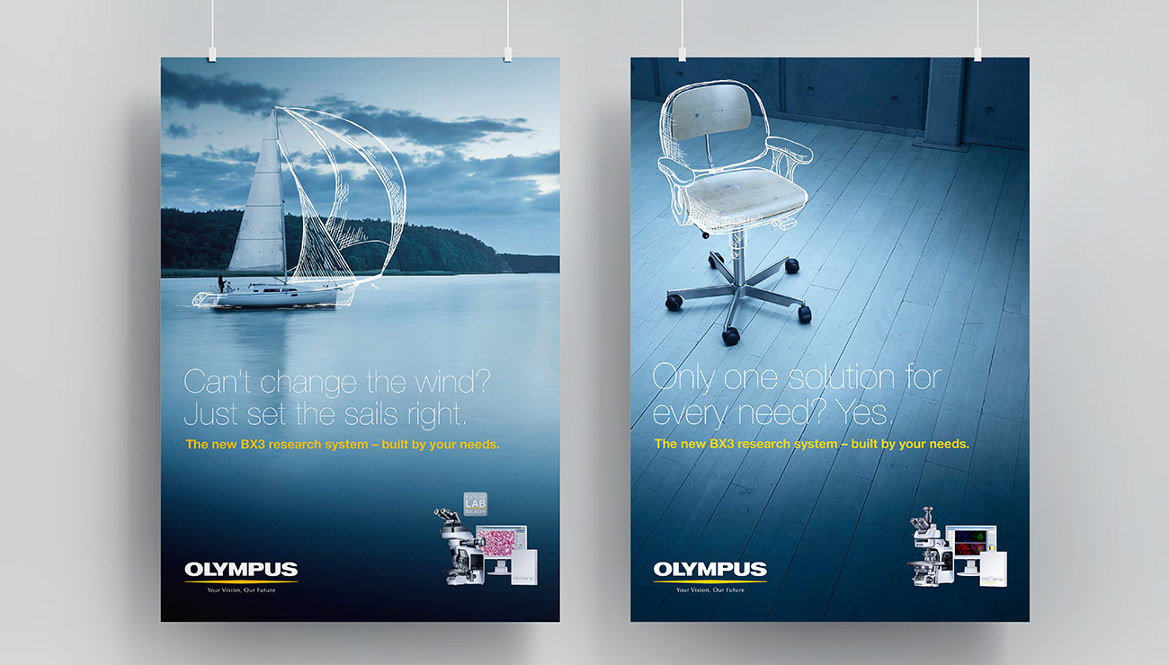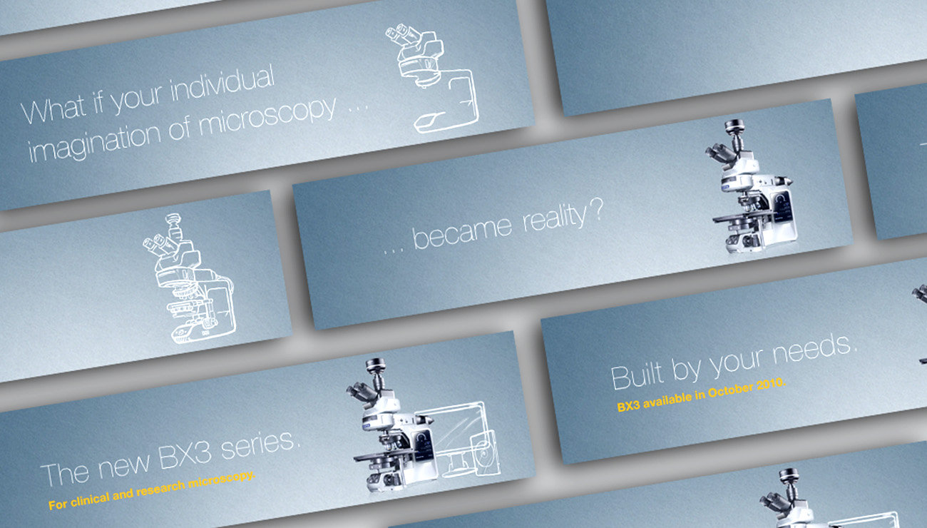 Entwicklung einer integrierten Fachkampagne für die Markteinführung der neuen Mikroskopen-Serie von Olympus. Von der Vorstellungskraft bis zur Realisierung. Von der Announcement-Phase bis zum Launch. Die Kampagne umfasste neben der Entwicklung verschiedener Werbemittel wie Anzeigen, Plakate, Give-Aways, Landingpage und Webspecial auch die Planung der Presse-Konferenz.